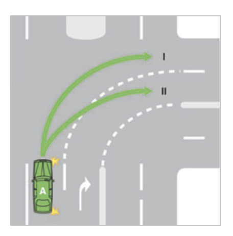 You are driving vehicle A. You want to turn right at the intersection. Which lane must you turn from? Mawtaw A pen nang a hek hi leteh. Lamkabom ah taklam ah pial ut hi le teh. Koi lane panin lampial ding na hiam?